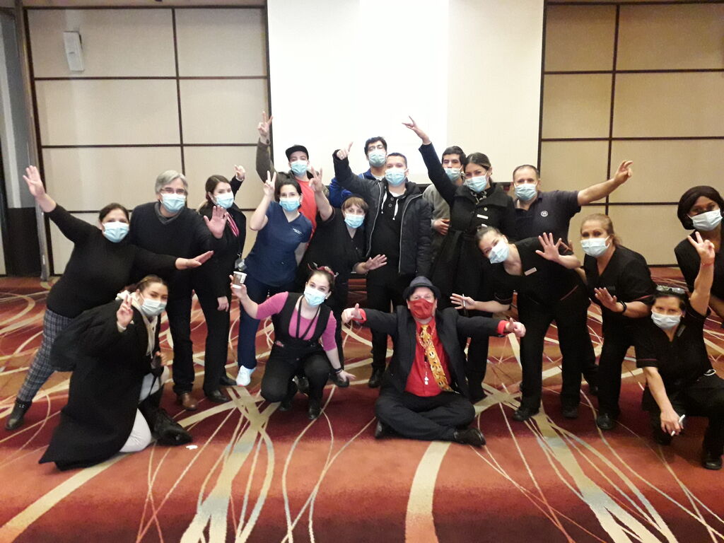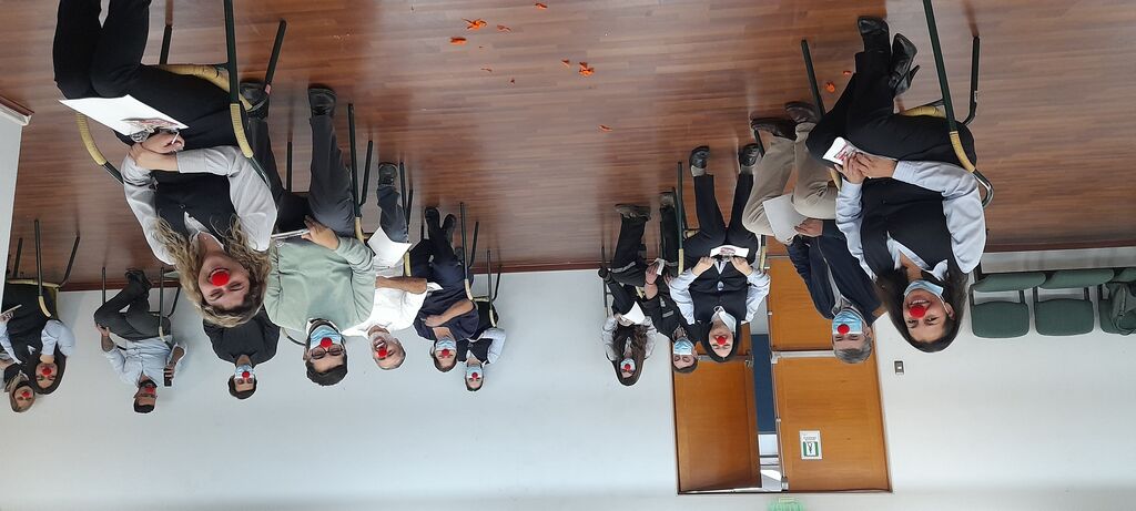 Se aporta al trabajo en equipo y como el humor produce cohesión y baja los niveles de estrés, ansiedad y egos.
